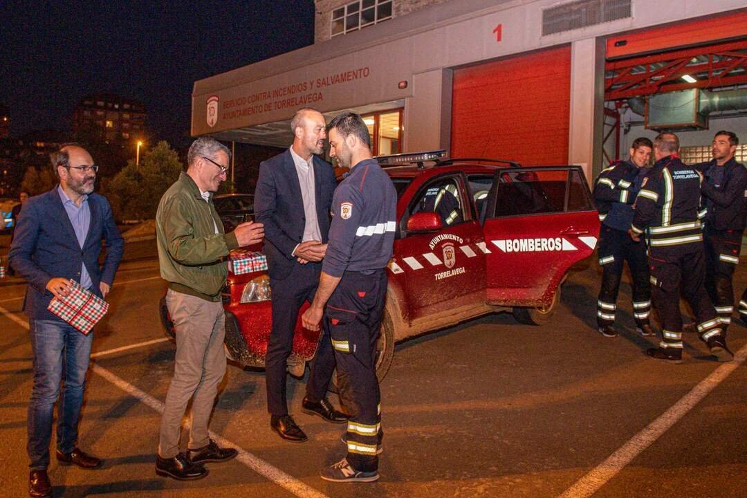 El alcalde, Javier López Estrada, acompañado por miembros de la Corporación, ha recibido a los bomberos en el Parque de Torrelavega.