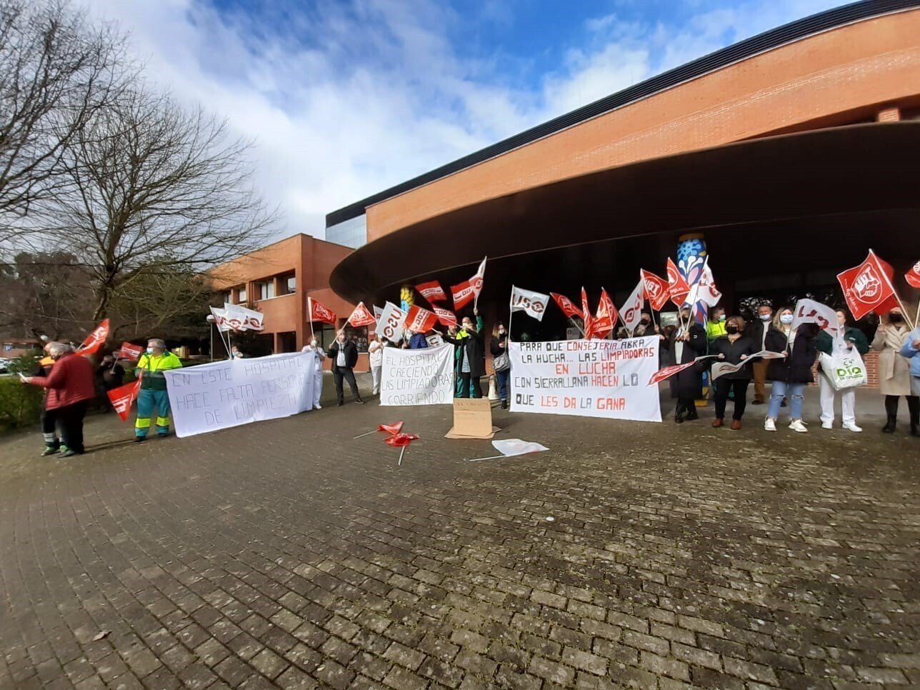 Tercer día de protesta de la plantilla del servicio de limpieza de Sierrallana