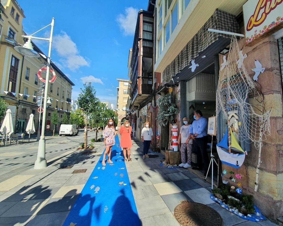 La calle Ancha, con la temática 'Marinera', ha ganado el I Concurso de decoración de calles y escaparates de Torrelavega 'Escaparate Compartido', organizado por el Ayuntamiento en colaboración con la Cámara de Comercio.