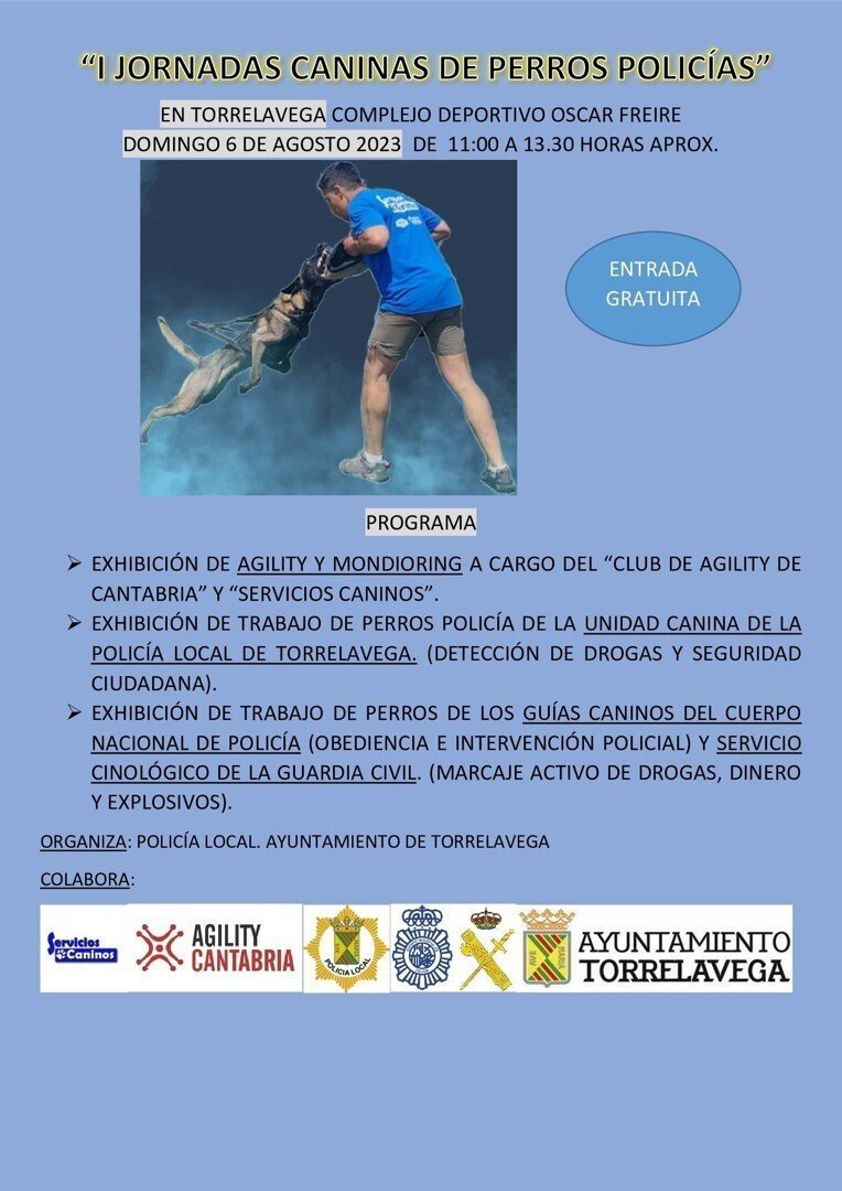 Habrá diferentes exhibiciones: de 'agility' y 'mondioring' a cargo del Club Agility Cantabria y Servicios Caninos, de trabajo de perros policía de la Unidad Canina de la Policía Local de Torrelavega (detección de droga y seguridad ciudadana) y de trabajo de perros de los guías caninos del Cuerpo Nacional de Policía (obediencia e intervención policial) y Servicio Cinológico de la Guardia Civil (marcaje activo de drogas, dinero y explosivos).