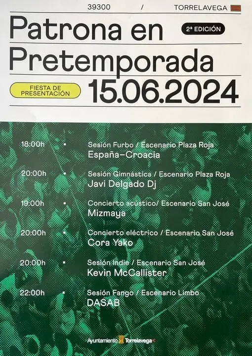 Torrelavega celebrará el 15 de junio, de 18 horas a medianoche, la jornada 'Patrona en Pretemporada', antesala de la segunda edición de 'Patrona en las Calles', que incluirá música en directo, la retransmisión del partido España-Croacia de la Eurocopa y sorpresas que se anunciarán en los próximos días.