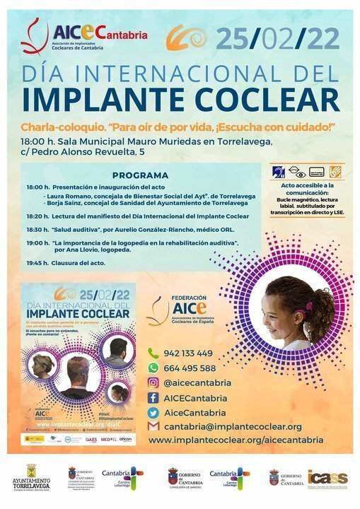Las actividades, organizadas por las concejalías de Sanidad y Bienestar Social y la Asociación de Implantados Cocleares de Cantabria, comenzarán este viernes, coincidiendo con el Día Internacional del Implante Coclear, en el que se iluminará de color lila la fachada del Palacio Municipal; y finalizarán el jueves 3, Día Mundial de la Audición, promovido por la Organización Mundial de la Salud (OMS), en el que se iluminará de color rojo.