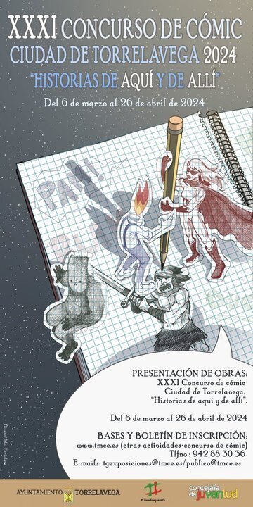 El Ayuntamiento ha convocado la trigésimo primera edición del Concurso de Cómics 'Ciudad de Torrelavega. Historias de aquí y de allí', dotado con 2.500 euros en premios y en el que podrán participar dibujantes no profesionales de entre 12 y 30 años, tanto de manera individual como colectiva. Los trabajos se podrán presentar del 6 de marzo al 26 de abril, ambos inclusive.
