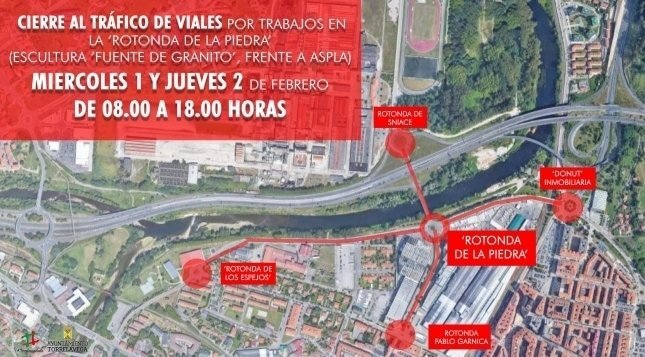 En concreto, se cortarán los tramos del vial que va desde la rotonda de la Inmobiliaria a la rotonda de la Piedra; el que va desde la rotonda de Los Espejos a la de La Piedra; el que va desde la calle Pablo Garnica a la rotonda de La Piedra; y el vial que va desde la rotonda de Sniace a la de La Piedra, aunque el acceso a la autovía se hará con normalidad.