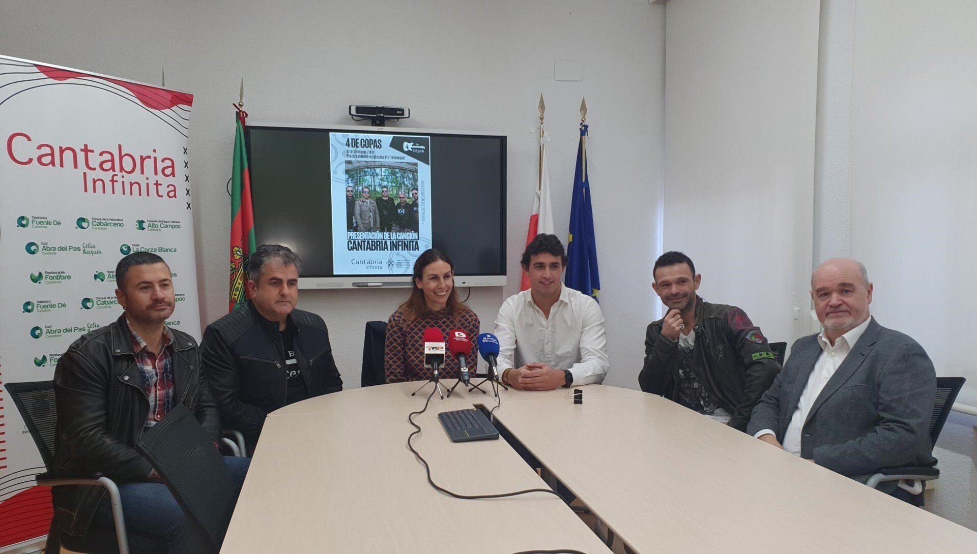 El concejal de Ferias y Mercados, Nacho González, acompañado por la directora general de Turismo, Marta Barca; por el consejero delegado de Cantur, Fernando de la Pinta; y por los integrantes de 4 de Copas; ha presentado este martes en rueda de prensa el concierto.