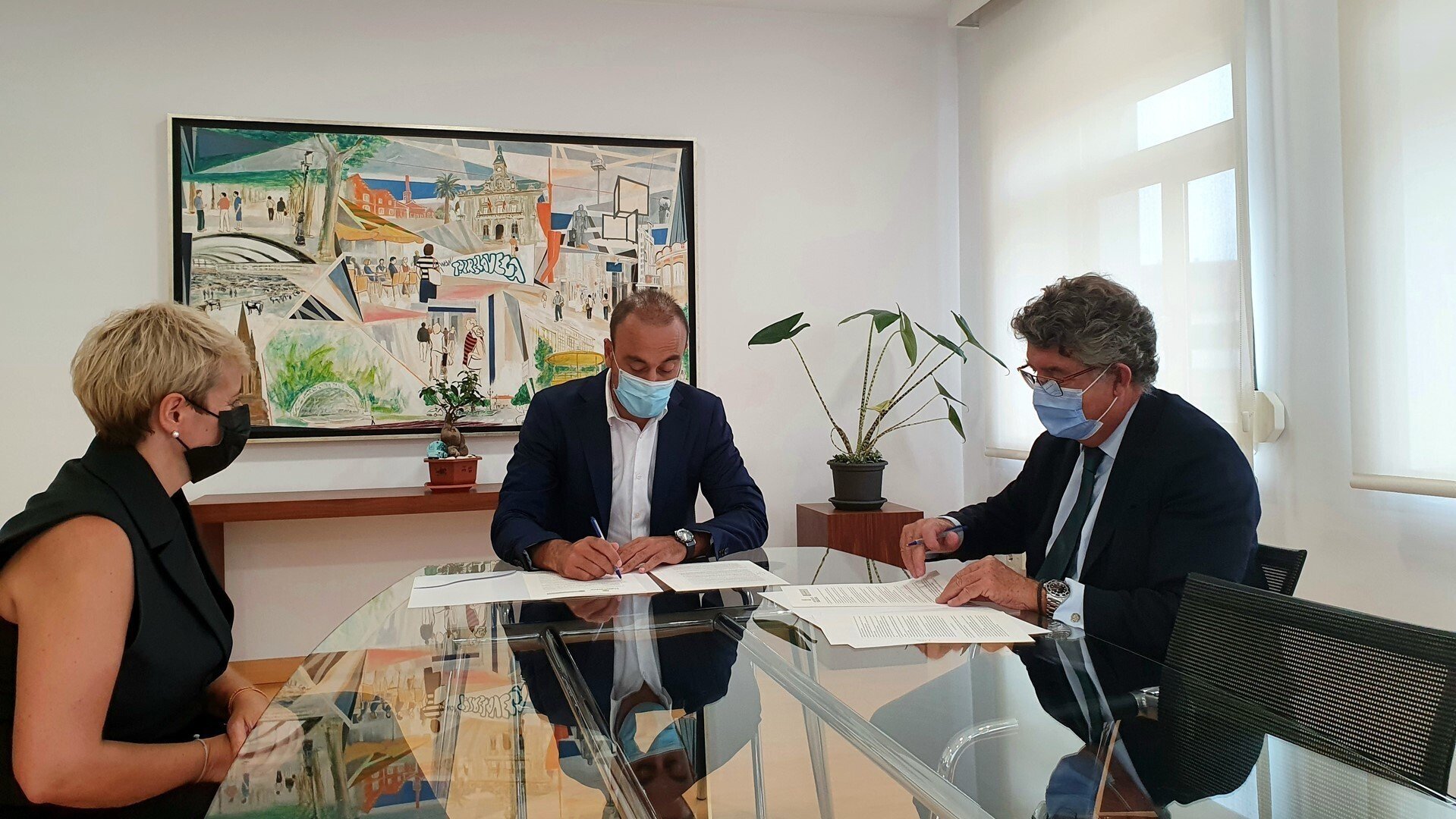 El alcalde de Torrelavega, Javier López Estrada, y el decano del Colegio de Abogados de Cantabria, Andrés de Diego Martínez, han firmado este viernes el convenio regulador por desarrollar este 2021 el servicio de orientación jurídica para la asistencia gratuita y su tramitación.