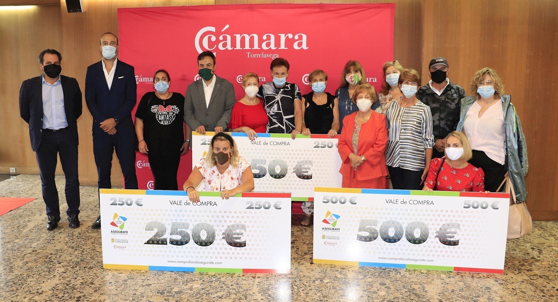 La Cámara de Comercio de Torrelavega ha acogido este viernes la entrega de los premios a los ganadores de la campaña de vales de compra, uno de 500 euros y cuatro de 250 euros.