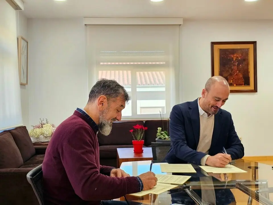 El alcalde de Torrelavega, Javier López Estrada, y el director de la Escuela Municipal de Artes Eduardo López Pisano, Pablo Burgos, han firmado el convenio de colaboración entre el Ayuntamiento y la Asociación Vegarte3, encargada de desarrollar este proyecto, para su funcionamiento durante este curso 2024-2025.