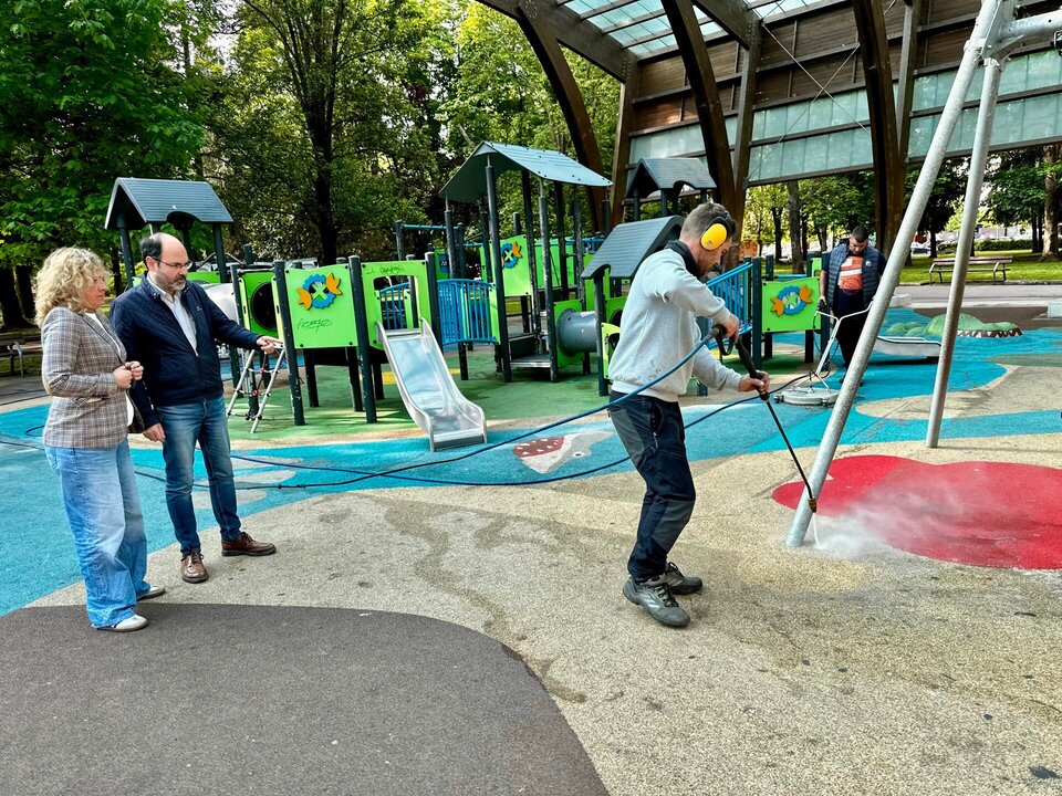 Torrelavega inicia la campaña de limpieza de parques infantiles en el Manuel Barquín