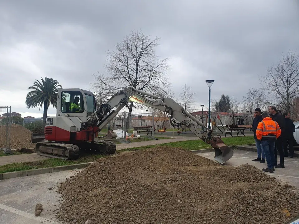 El alcalde, Javier López Estrada, y el concejal de Deportes, Nacho González, han visitado el inicio de las obras de la pista, que se está construyendo en la zona norte de la plaza, junto al parque infantil.