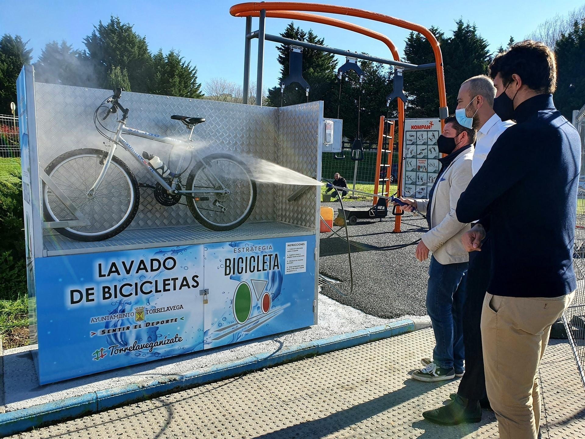 El Ayuntamiento de Torrelavega ha instalado su primer lavadero municipal de bicicletas, que se ubica en el complejo deportivo Óscar Freire.