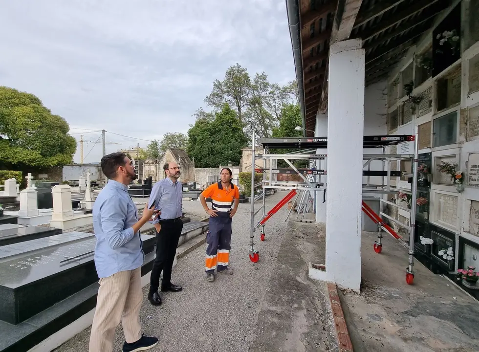 En el camposanto más antiguo de la ciudad, que data de 1810, se han eliminado humedades y filtraciones de los bloques de nichos, saneando todas las paredes de los pabellones de los cubiertos, en algunos casos con un enfoscado.