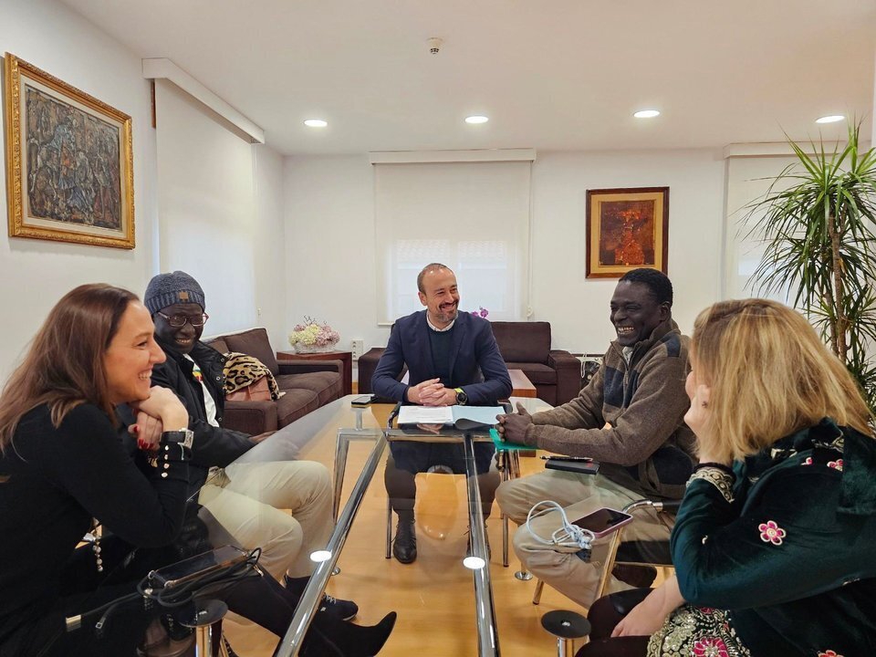 El alcalde de Torrelavega, Javier López Estrada, acompañado por las concejales de Hermanamientos y Turismo, Ana González Barca y Cristina García Viñas, respectivamente, se ha reunido con Mbargou Samb y Elhadji Samba Dipo, de la Asociación Maseni, para preparar este acto.