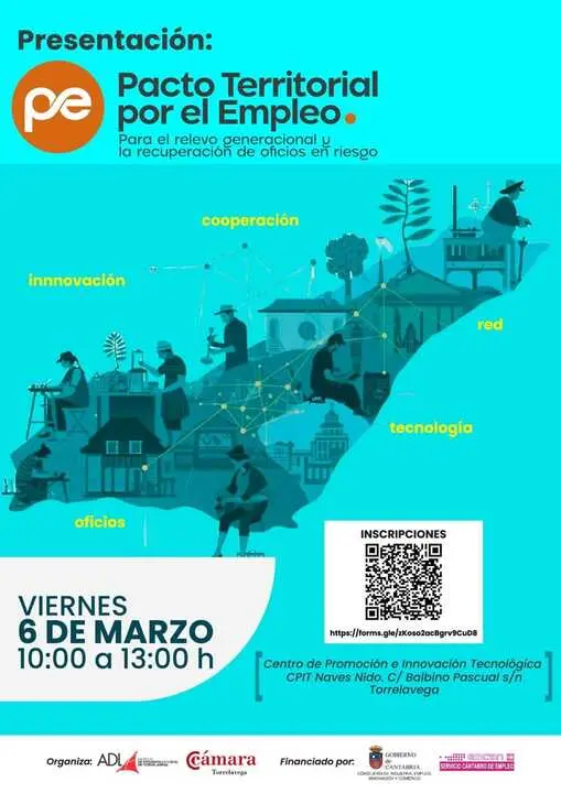 Torrelavega acogerá este viernes, 6 de marzo, la presentación del Pacto Territorial por el Empleo de la Comarca del Besaya para el relevo generacional y la recuperación de oficios en riesgo, que tendrá lugar de 10.00 a 13.00 horas en el Centro de Promoción e Innovación Tecnológica (CPIT) Naves Nido.