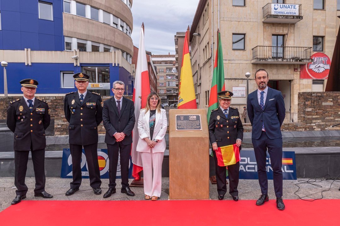 La Plaza de la Llama de Torrelavega luce desde este viernes una placa colocada frente a la Comisaría de la Policía Nacional para reconocer la labor del Cuerpo con motivo de su Bicentenario.