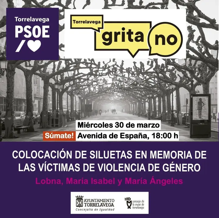 Torrelavega recordará esta tarde a las víctimas de la violencia de género con una concentración que tendrá lugar en la Avenida de España, frente al instituto Marqués de Santillana, a partir de las 18.00 horas.