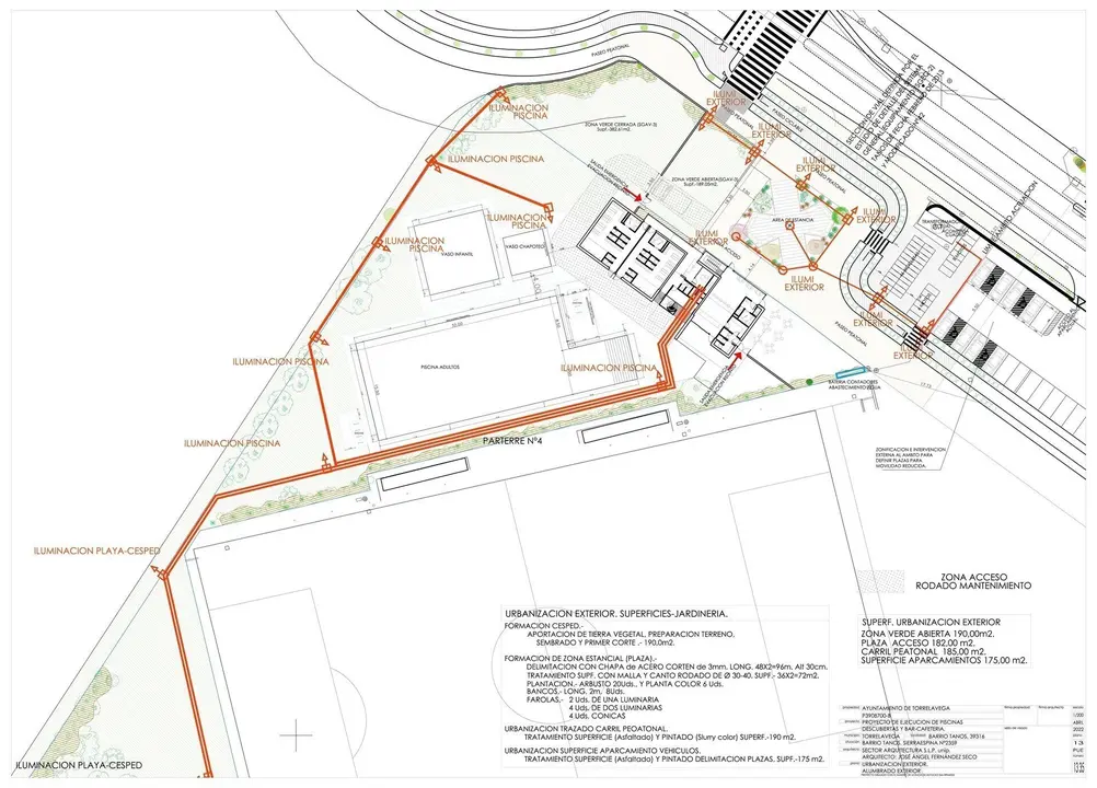 Este nuevo equipamiento deportivo estará situado en las instalaciones deportivas de Santa Ana, en Tanos, y contará con un edificio principal con cafetería (para usuarios de la piscina y también de acceso libre que funcionará durante todo el año), dos vestuarios con capacidad para 400 usuarios y la zona de piscinas al aire libre con tres vasos.