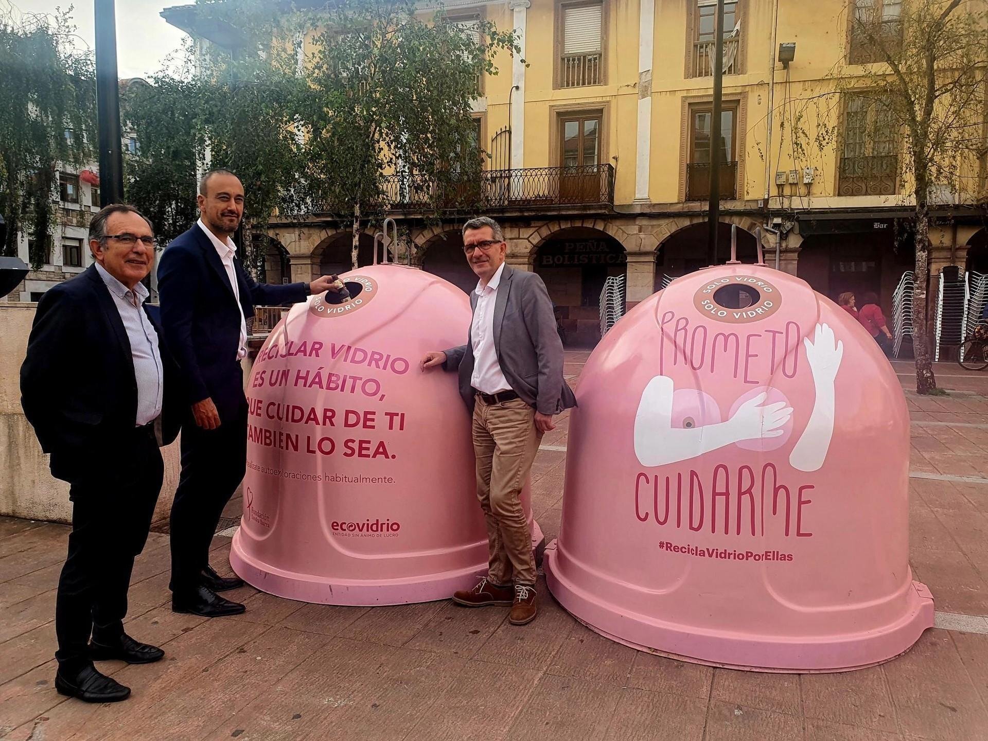Torrelavega contará durante las dos próximas semanas, con motivo del Día Mundial de lucha contra el Cáncer de Mama (19 de octubre), con dos contenedores rosas instalados en la Plaza Roja dentro de la campaña nacional 'Recicla vidrio por ellas', puesta en marcha por Ecovidrio para fomentar el reciclaje de envases de vidrio y la prevención de este tipo de cáncer.