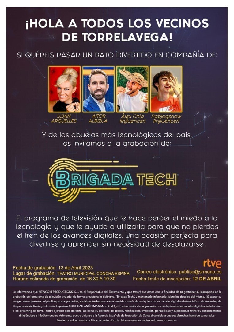 Televisión Española grabará este jueves en el Teatro Municipal Concha Espina (TMCE) de Torrelavega su programa 'Brigada Tech', un espacio de entretenimiento y divulgación sobre destrezas digitales que se emite en la 1 con el objetivo de "quitar el miedo a la tecnología, divertirse y aprender".