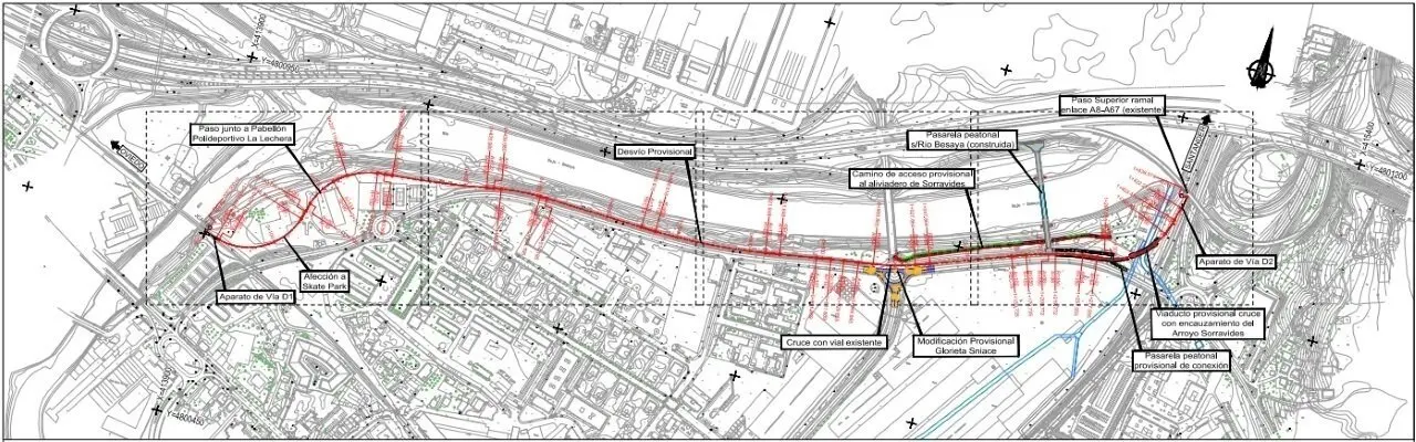 El Ministerio de Fomento ha presentado el proyecto constructivo de la vía auxiliar incluida en el proyecto del soterramiento ferroviario de Torrelavega, que se construirá en la zona norte del Bulevar Ronda, entre el puente sobre el Saja-Besaya y la rotonda de La Inmobiliaria, y ocupará la acera situada junto a la rivera del río Saja-Besaya, que se deberá eliminar durante el tiempo que la vía esté en servicio.