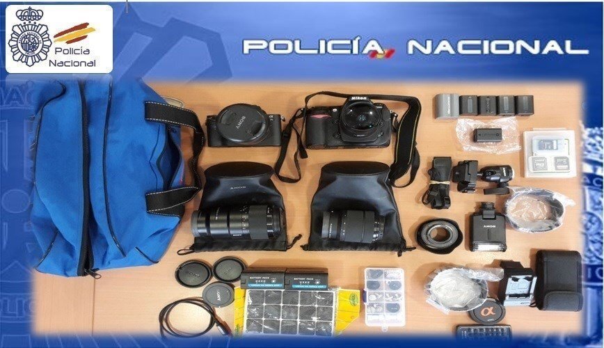 En el registro efectuado en dicho domicilio se intervino material relacionado con la fotografía, como cámaras, objetivos y tarjetas de memoria que fueron entregados a sus legítimos propietarios.