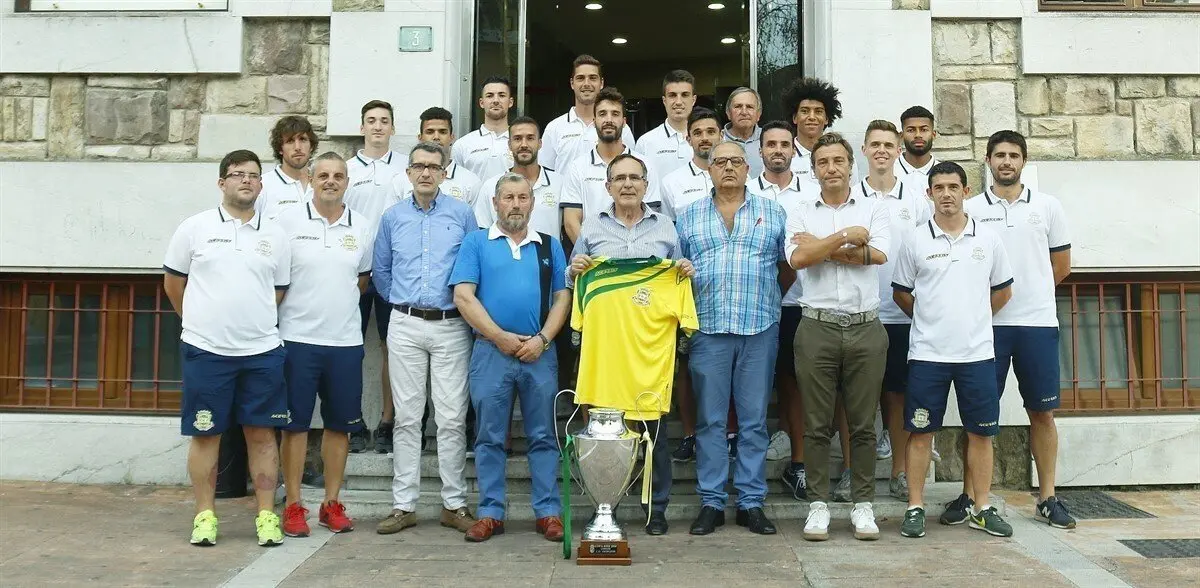 El alcalde, que es socio del club, ha entregado a los jugadores y directivos una pulsera, un pin y un llavero de la ciudad de Torrelavega y, a su vez, ha recibido una camiseta del Tropezón con su nombre.