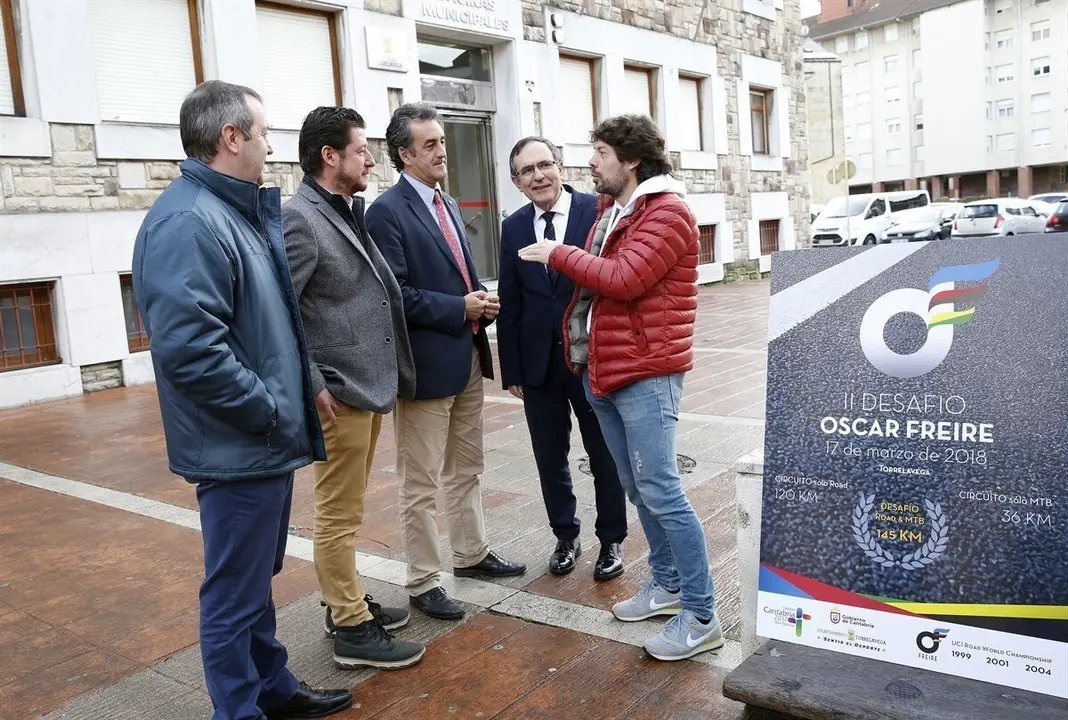 El propio Oscar Freire, tricampeón del mundo de ciclismo, ha presentado este viernes el desafío junto con el consejero de Innovación, Industria, Turismo y Comercio, Francisco Martín, el alcalde de Torrelavega, José Manuel Cruz Viadero, el concejal de Deportes, Jesús Sánchez Pérez, Iván Aguirre de 'Cicloturismo Cantabria' y Enrique Aja, presidente de la Escuela Municipal de Ciclismo.