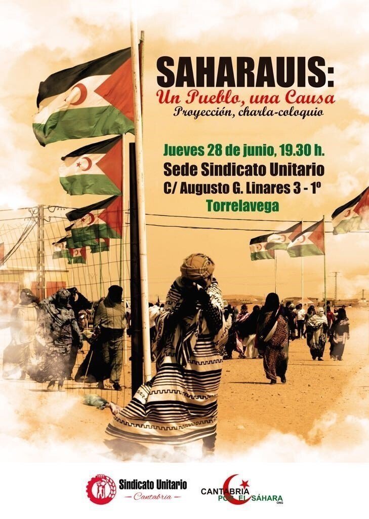 El Sindicato Unitario de Cantabria en Torrelavega ha organizado para este jueves 28 la charla coloquio 'Saharauis: Un pueblo, una causa', que tendrá lugar en la sede sindical a las 19.30 horas.