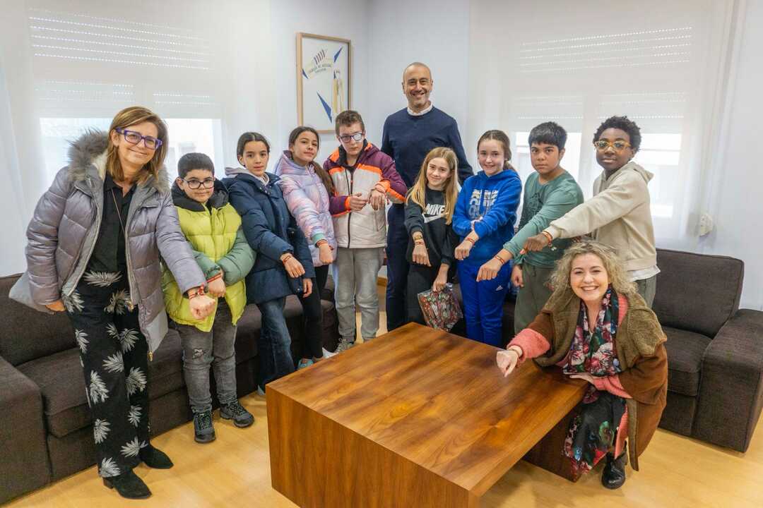 El alcalde, Javier López Estrada, ha hecho entrega hoy a los alumnos del colegio Fernando de los Ríos de las pulseras con el lema ‘Juntos es Más… en Navidad’, que ellos mismos regalarán durante sus actuaciones navideñas.