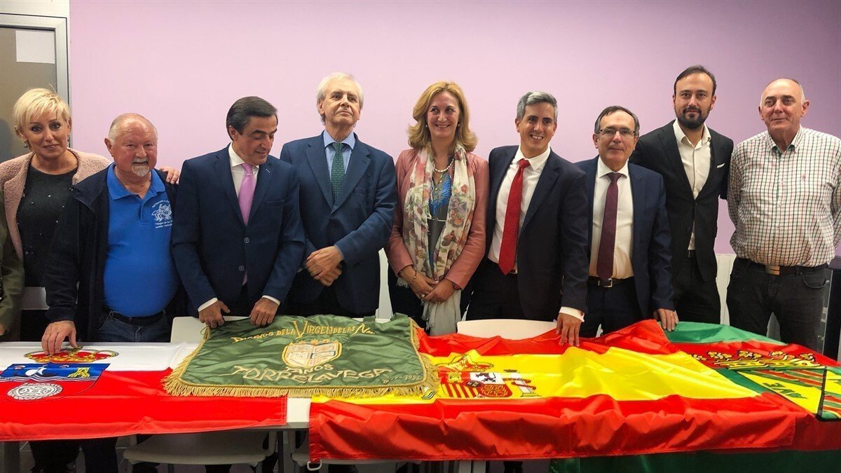 El Gobierno de Cantabria ha entregado al Grupo de Danzas Virgen de Las Nieves de Tanos una bandera de la Comunidad Autónoma que esta agrupación portará en el desfile del Día de la Hispanidad en Nueva York.