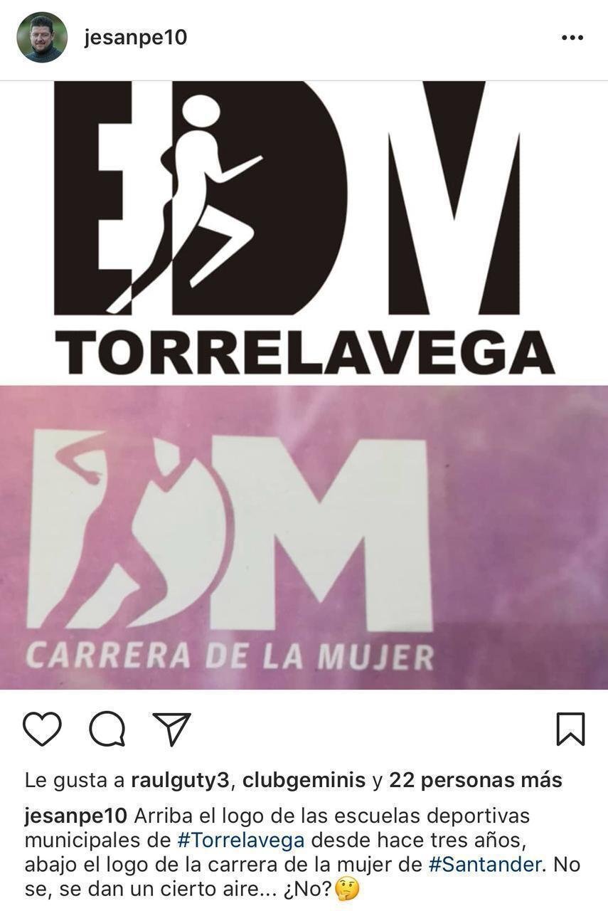 "Arriba el logo de las escuelas deportivas municipales de #Torrelavega desde hace tres años, abajo el logo de la carrera de la mujer de #Santander. No se, se dan un cierto aire... ¿No?"