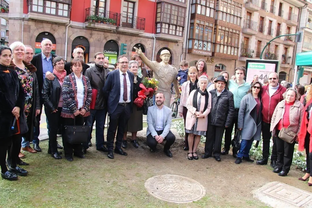 Torrelavega ha instalado este sábado la estatua que recuerda de Ángel Quintanal, el policía que regulaba el tráfico en el cruce de Cuatro Caminos que fue conocido como el 'Nureyev de Torrelavega', y la ha inaugurado con la asistencia de muchísimas personas.
