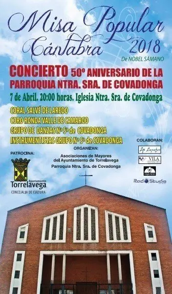 La iglesia de Nuestra Señora de Covadonga de Torrelavega acogerá este sábado, 7 de abril, a partir de las 20.00 horas, una Misa Popular Cántabra de Nobel Sámano dentro de los actos conmemorativos del medio siglo de esta parroquia.