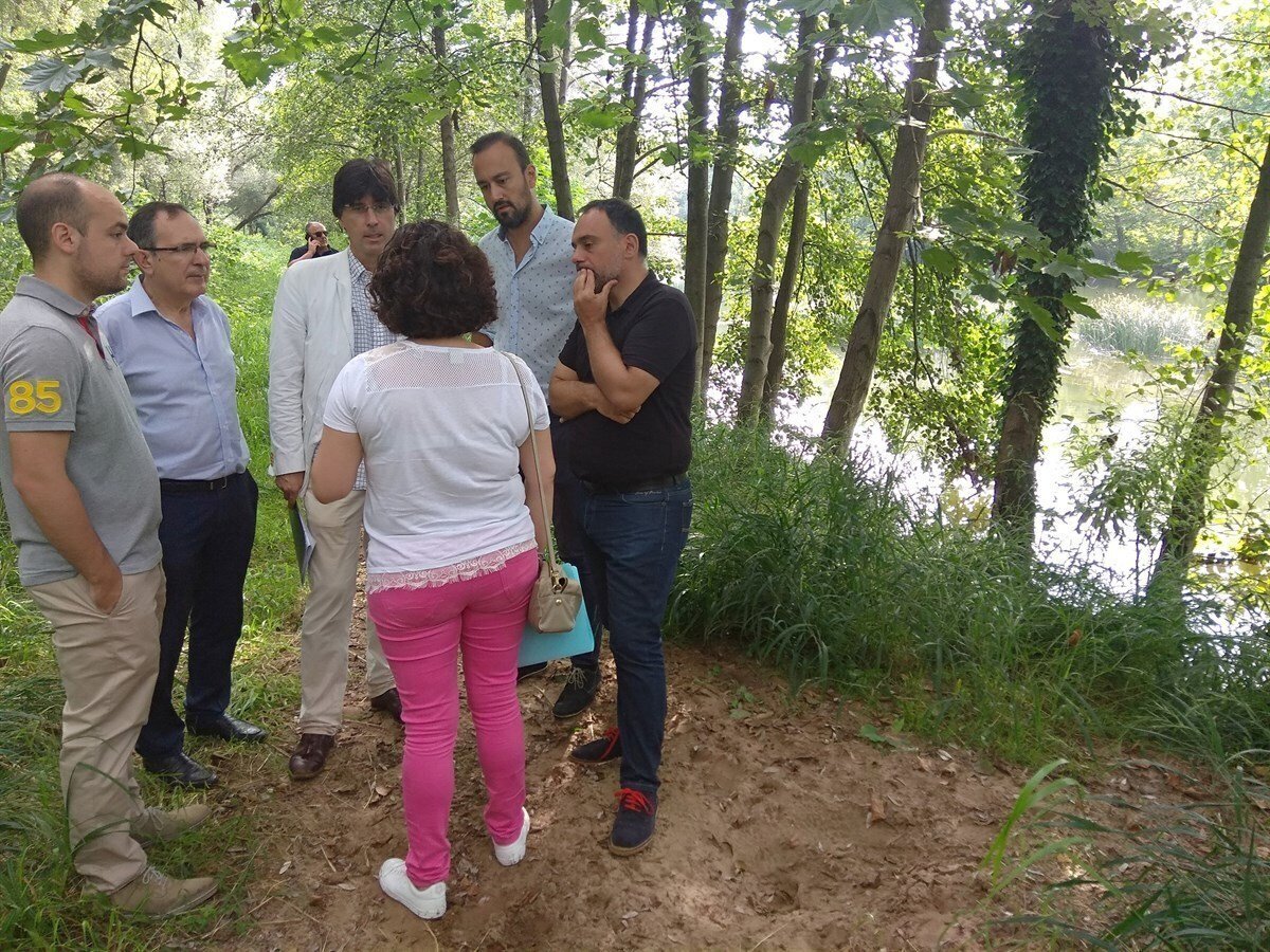 El regidor, junto al primer teniente de alcalde, Javier López Estrada, técnicos de la Confederación Hidrográfica del Cantábrico y del Ayuntamiento, y el director de la obra de la Pasarela, han visita el entorno del río Besaya, a la altura del Parque de Las Tablas (zona del Patatal) para analizar sobre el terreno las posibilidades de restauración que tiene esta importante zona verde de la ciudad con más de 130.000 metros cuadrados que podrán ser ganados a la ciudad con la ejecución de la pasarela que atravesará el río Besaya a la altura de Armando Álvarez.