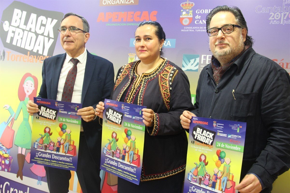 Más de 150 comercios participan este viernes, 24 de noviembre, en el evento 'Black Friday Torrelavega', que incluirá actividades de calle y grandes ofertas comerciales. La iniciativa está organizada por APEMECAC, con la colaboración del Ayuntamiento y la Consejería de Industria, Turismo y Comercio.