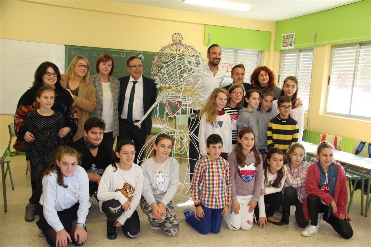 El alcalde de Torrelavega, José Manuel Cruz Viadero, y el primer teniente de alcalde, Javier López Estrada, han visitado este martes la creación elaborada por los alumnos del colegio Pintor Escudero Espronceda que ha sido seleccionada para este proyecto.