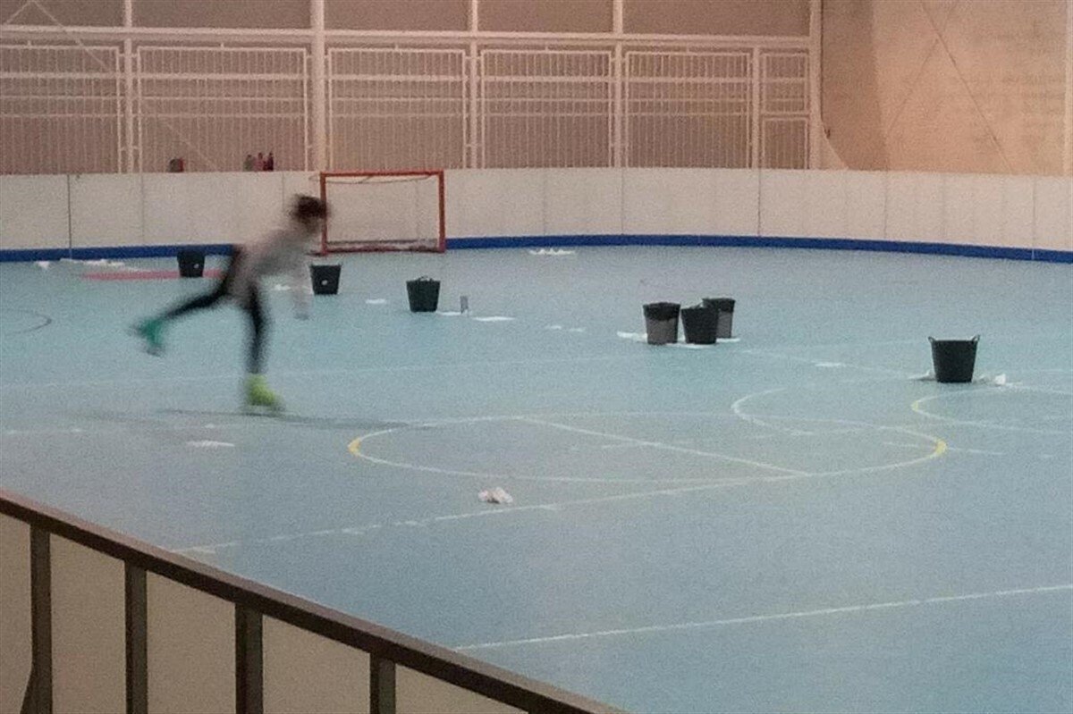 El portavoz del partido en la localidad, Diego Haya, indica que "desde el primer día" esta instalación deportiva tiene goteras que "sufren" los estudiantes y los alumnos del Club de Patinaje Artístico.