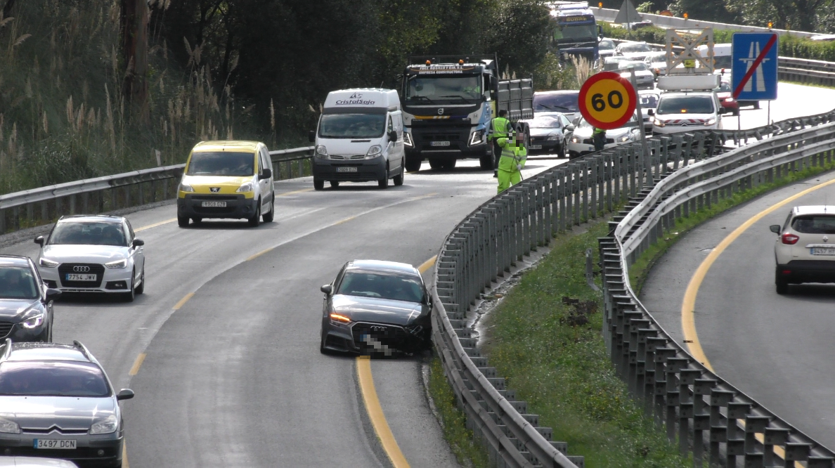 La salida de vía de un vehículo a escasos 500 metros de Torrelavega sentido Santander provoca importantes retenciones en la autovía A67.