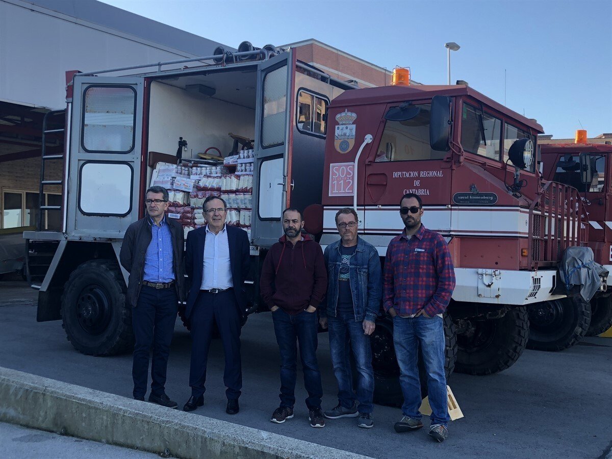 El alcalde de Torrelavega, José Manuel Cruz Viadero, ha asistido al acto de entrega de los camiones en el Parque de Bomberos, acompañado por el concejal de Economía y Hacienda, Pedro Pérez Noriega; los concejales de ACpT, Iván Martínez y Alejandro Pérez; y el presidente de Alouda Cantabria, Ángel Oria.