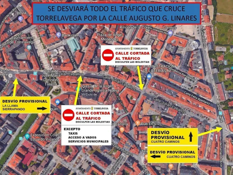 La medida afectara a todos los vehículos a excepción de los residentes, taxis y vehículos de emergencia, estando previsto, en el caso del transporte urbano, el desvió de las líneas de Torrebus por la calle Augusto González Linares, una disposición que será indicada en las paradas de las líneas afectadas a los usuarios.