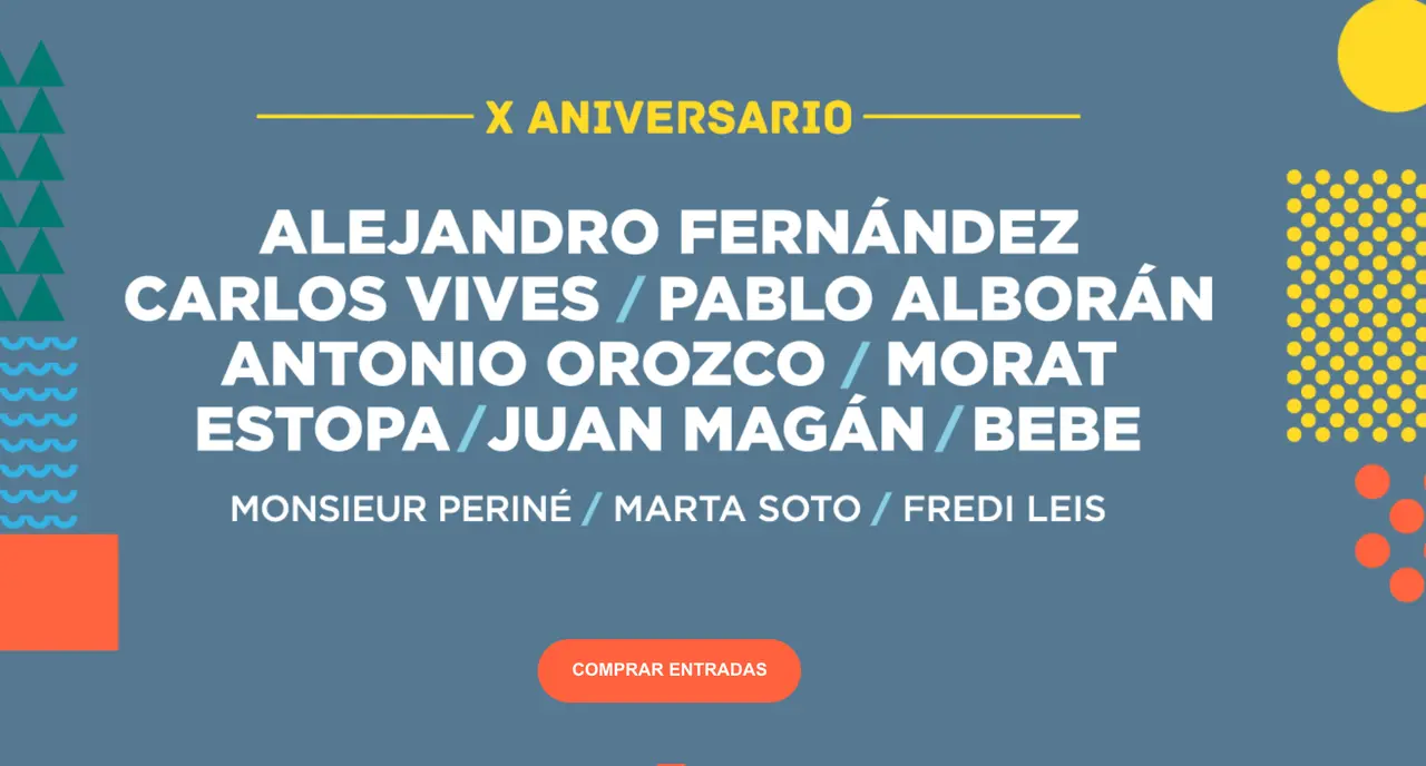 La última noche del festival será la fiesta décimo aniversario de Música en Grande, en la que desde 10 euros se podrá disfrutar en directo del trabajo del cantante y compositor colombiano Carlos Vives, que es reconocido por mezclar música colombiana como la cumbia y el vallenato con pop y rock, y de la estrella internacional del electro latino Juan Magán, que atesora una colección de hits y colaboraciones con artistas como Enrique Iglesias o Paulina Rubio.