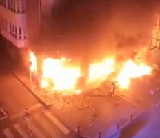 A la llegada de los bomberos el incendio estaba completamente desarrollado y había roto por la fachada. Los efectivos del 112 procedieron a bajar la carga de calor y a extinguir las llamas, que han calcinado por completo el local y provocado daños en el exterior del edificio y en dos vehículos aparcados en la zona, que también se han visto afectados. Ya sin llamas, realizaron labores de refrigeración y revisión con cámara térmica del área quemada.