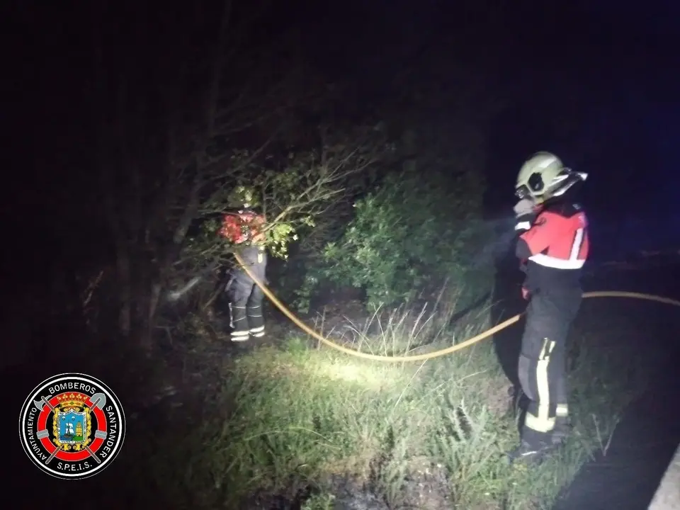 Los bomberos del Gobierno de Cantabria, junto los de Santander y agentes del Medio Natural, han extinguido anoche un incendio de arbolado y matorral en la carretera nacional de Ribamontán al Monte, en la zona de Anero.