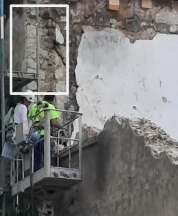 A su juicio, esta diferencia de piedra y labra demuestra que la fachada norte estaba formada por tres muros diferentes: el ya derruido del ala oeste, y otros dos bien diferenciados que apuntan hacia una edificación preexistente integrada en el edificio declarado BIC.