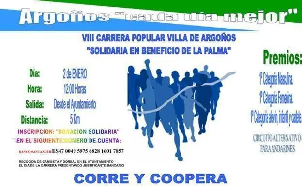 La octava edición de la Carrera Popular Villa de Argoños estaba prevista para el día 2 de enero, a las 12.00 horas, con salida y llegada en la Plaza del Ayuntamiento. En esta ocasión, la recaudación solidaria se destinaría a los afectados por la erupción del volcán en La Palma.