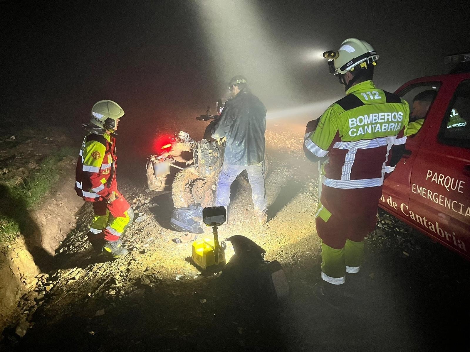 Los bomberos auxilian a un motorista tras caer por una salida de pista entre Mirones y Liérganes