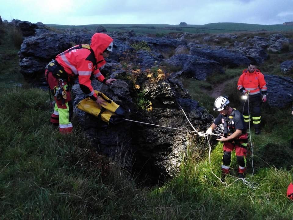 Bomberos del Gobierno de Cantabria han rescatado en la tarde noche de este sábado, 21 de septiembre, a un perro que se había caído en una torca en Bareyo.