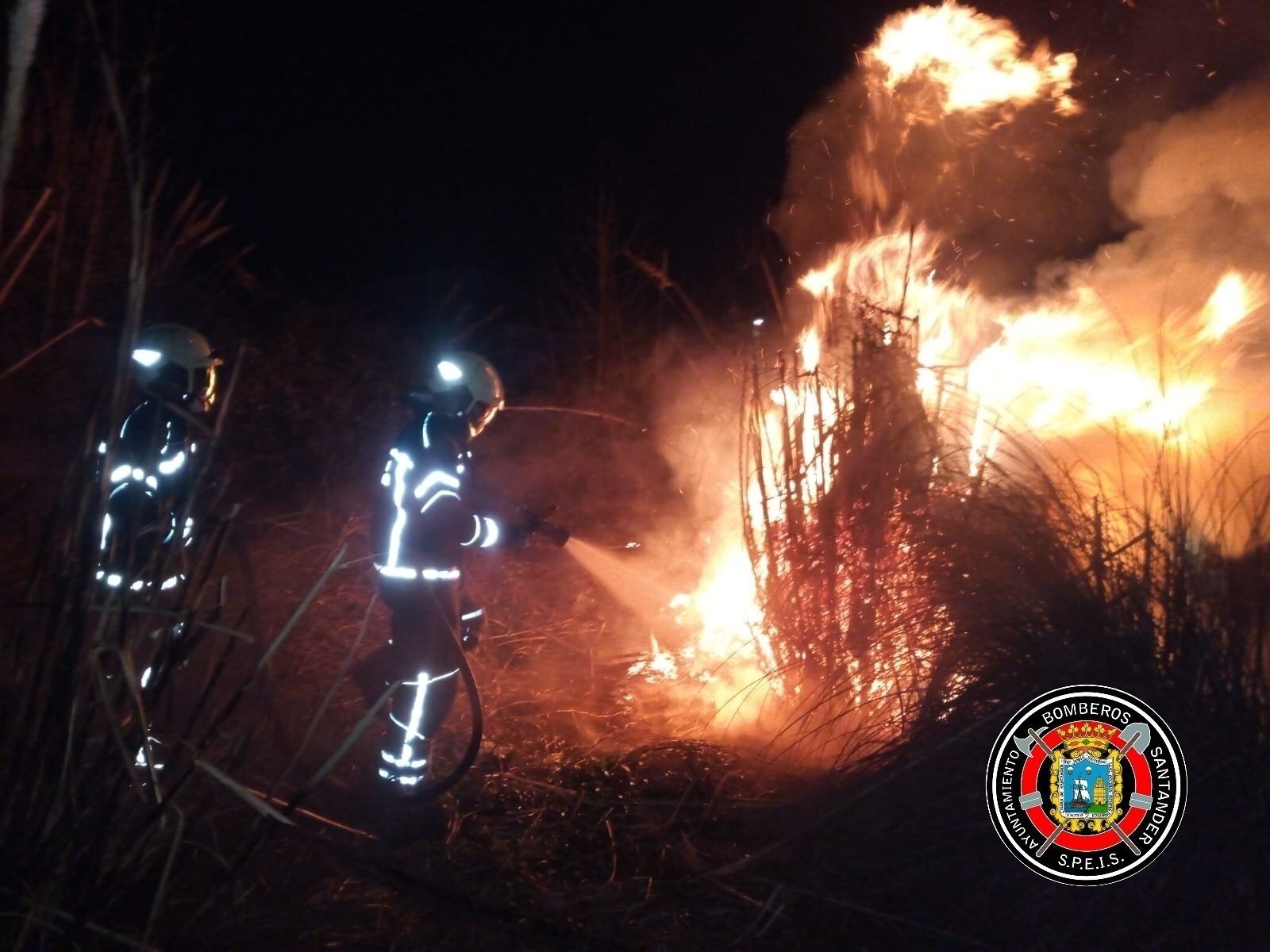 Bomberos de Santander han extinguido esta noche un incendio de vegetación, cercano a una edificación, que se ha producido en la salida 194 de la autovía A-8, en Anero.