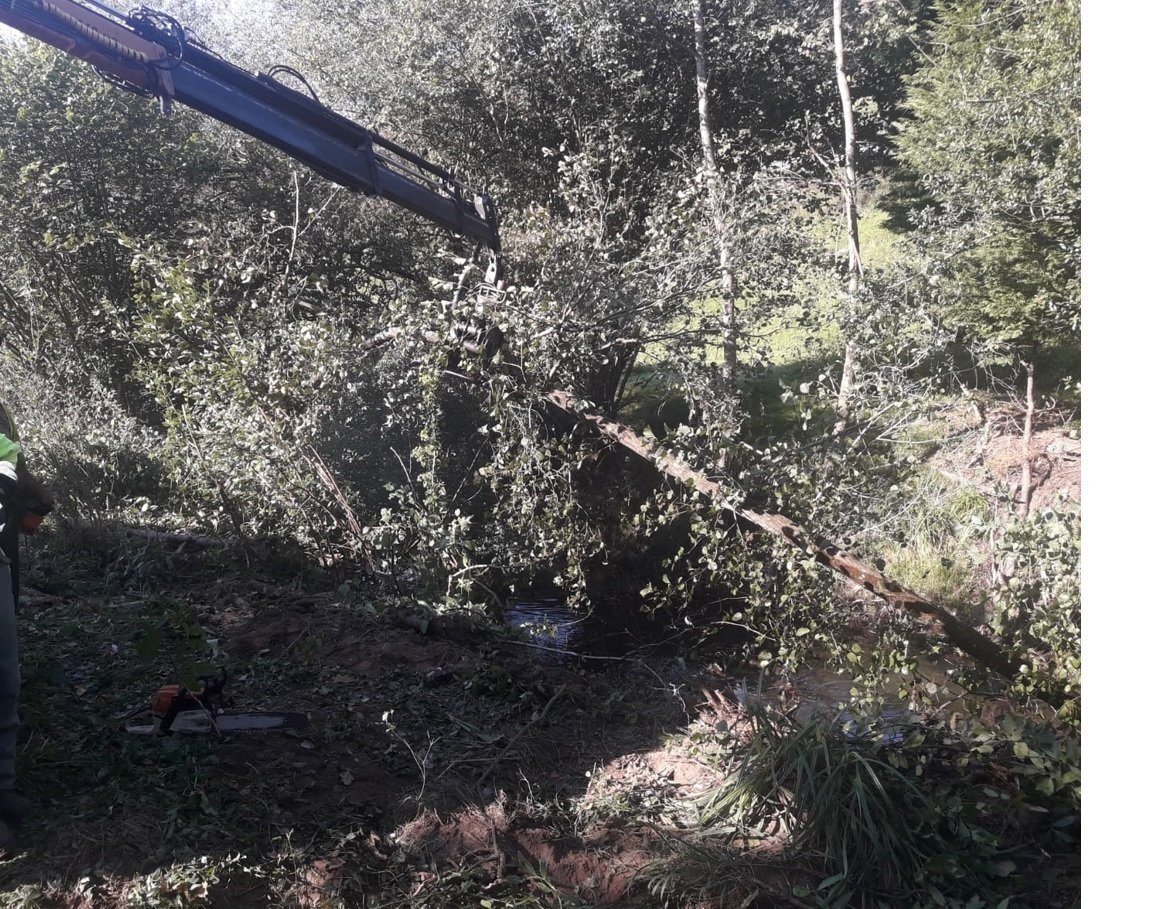 De forma previa se ha llevado a cabo un desbroce y poda selectivos para permitir el tránsito de la maquinaria y se han retirado los árboles caídos que se encontraban atravesados en el cauce formando un obstáculo.