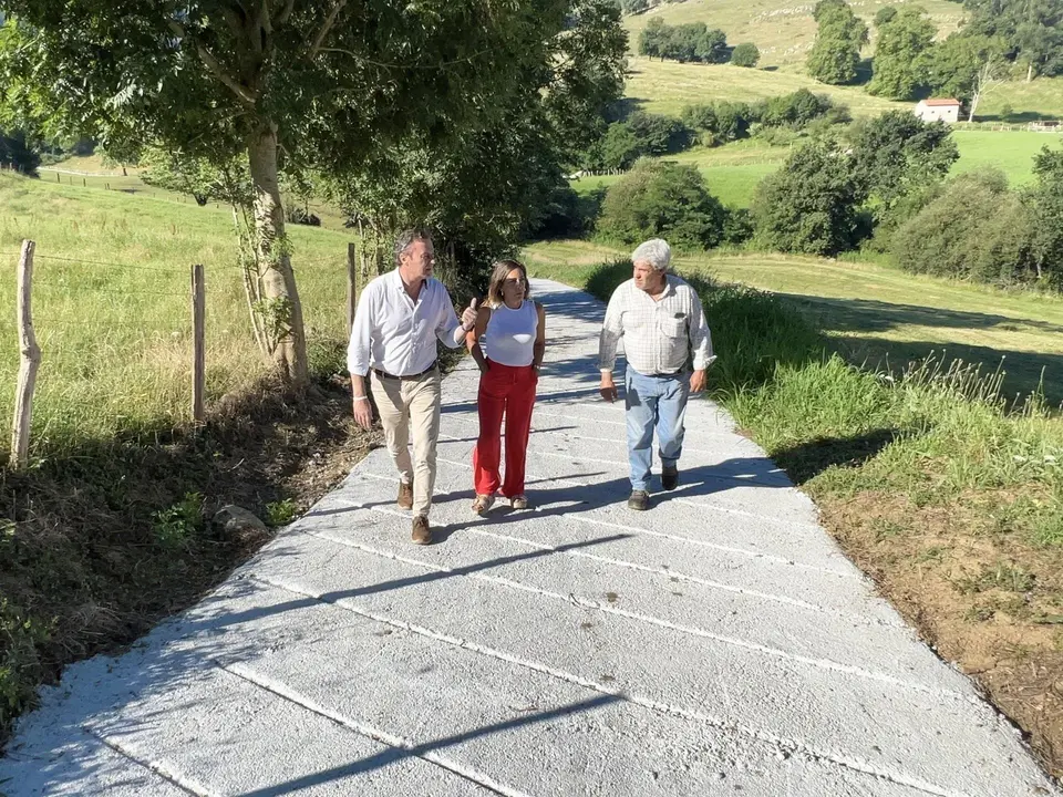 El consejero de Desarrollo Rural, Ganadería, Pesca, Alimentación y Medio Ambiente, Guillermo Blanco, y la alcaldesa de Solórzano, Gema Perojo, han comprobado la finalización de estas obras, que han consistido en la pavimentación del camino, que se encontraba deteriorado y es usado habitualmente por ganaderos del municipio.